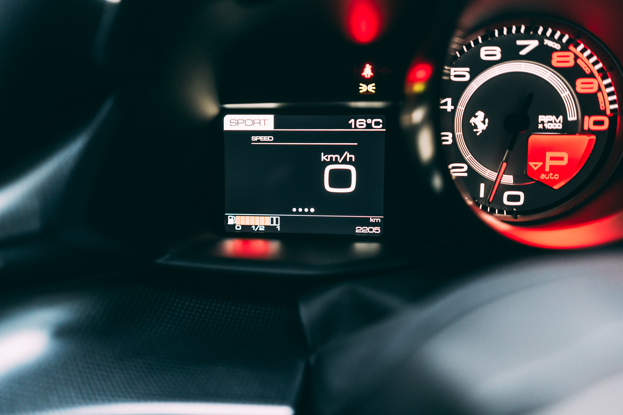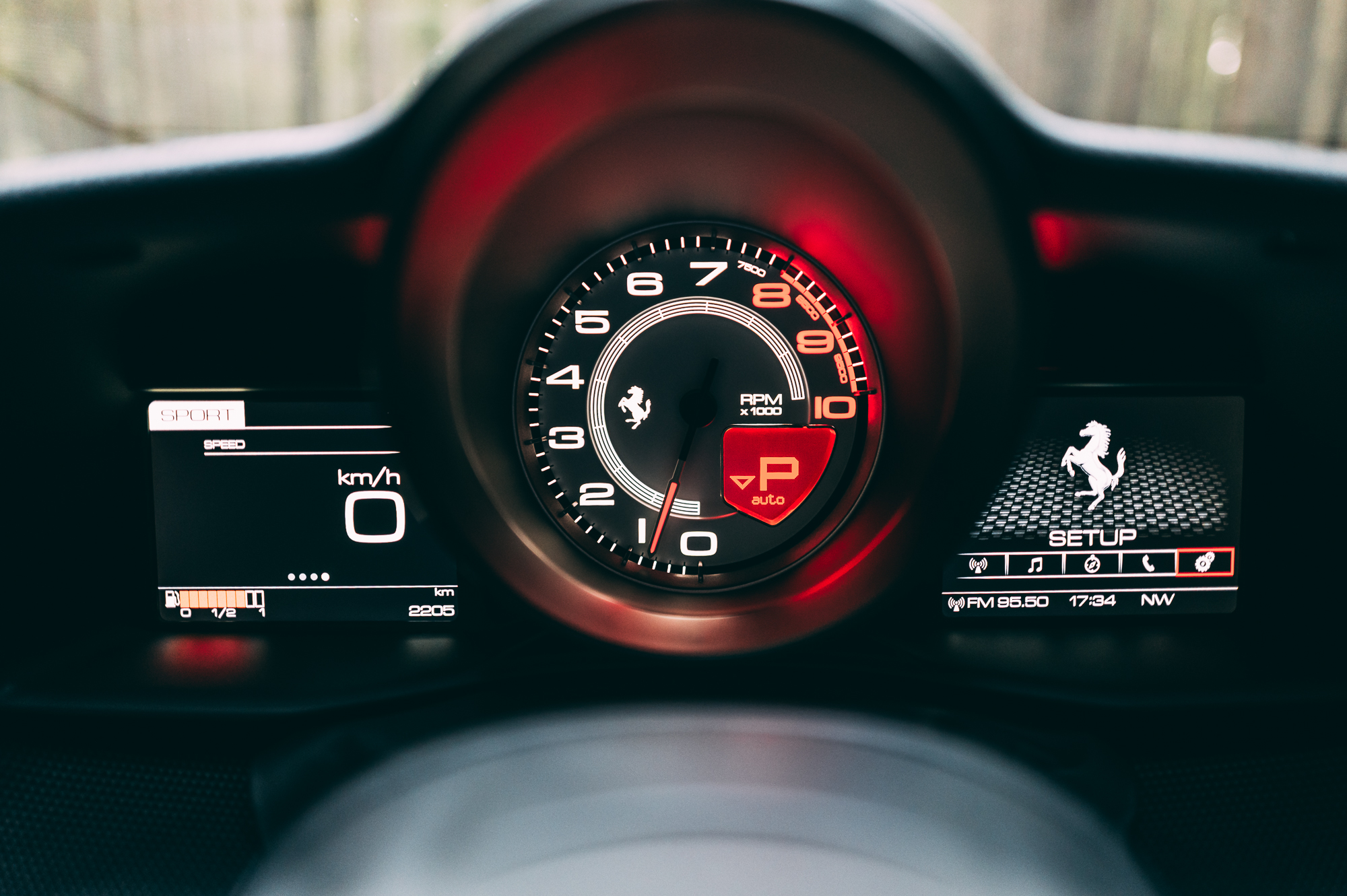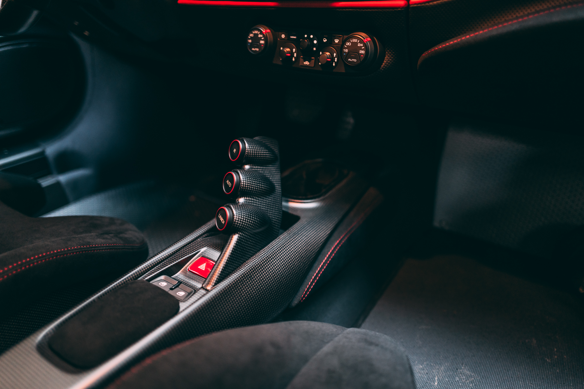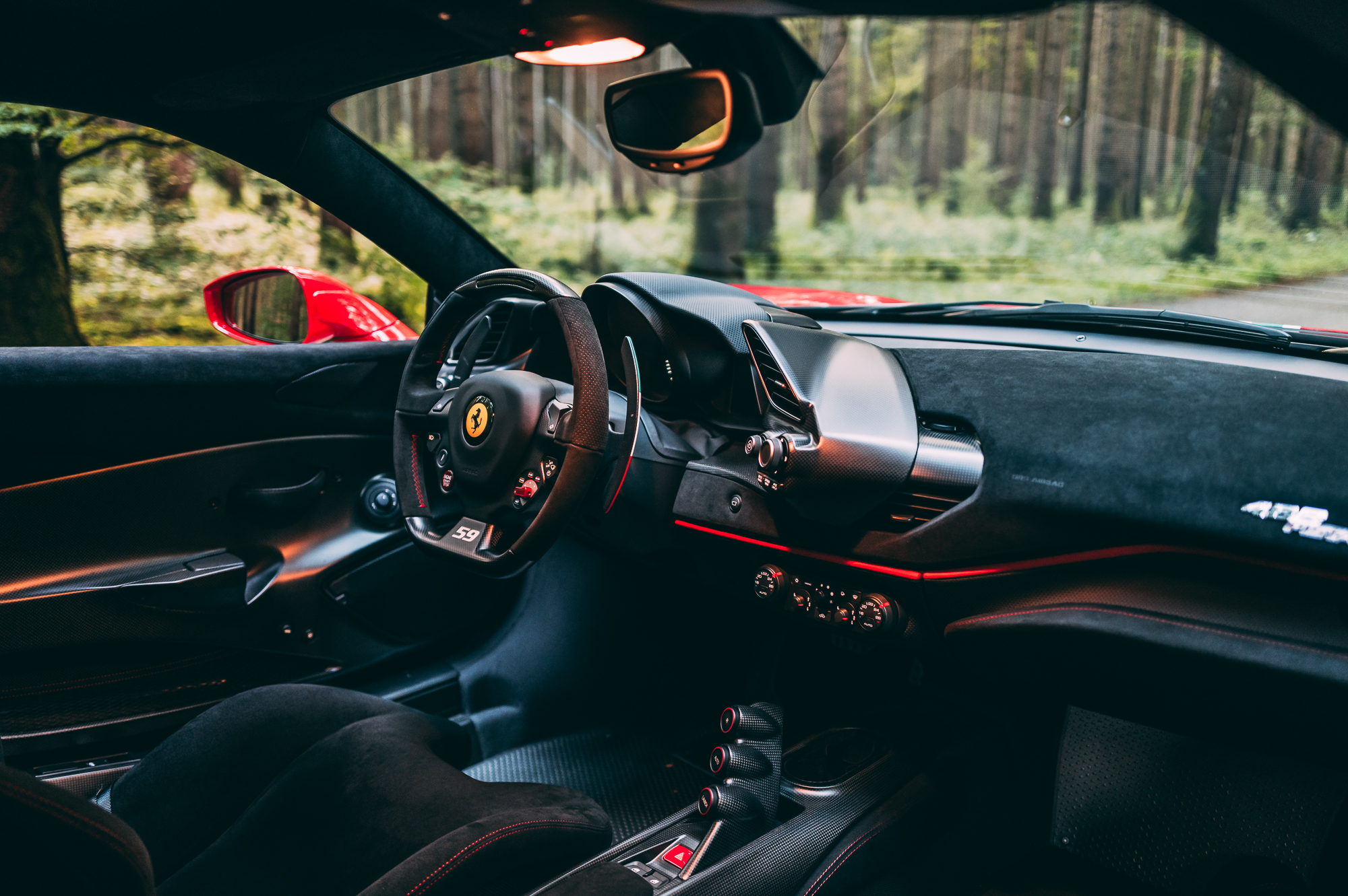 Inside, the cabin is trimmed in black Alcantara with extensive carbon-fibre components. A tricolore stripe runs across the driver’s seat, dashboard, and steering wheel—echoing the Italian flag motif of Ferrari’s factory race cars and emphasizing its connection to the brand’s GT racing division.