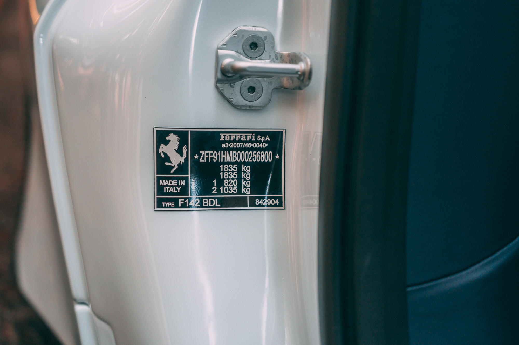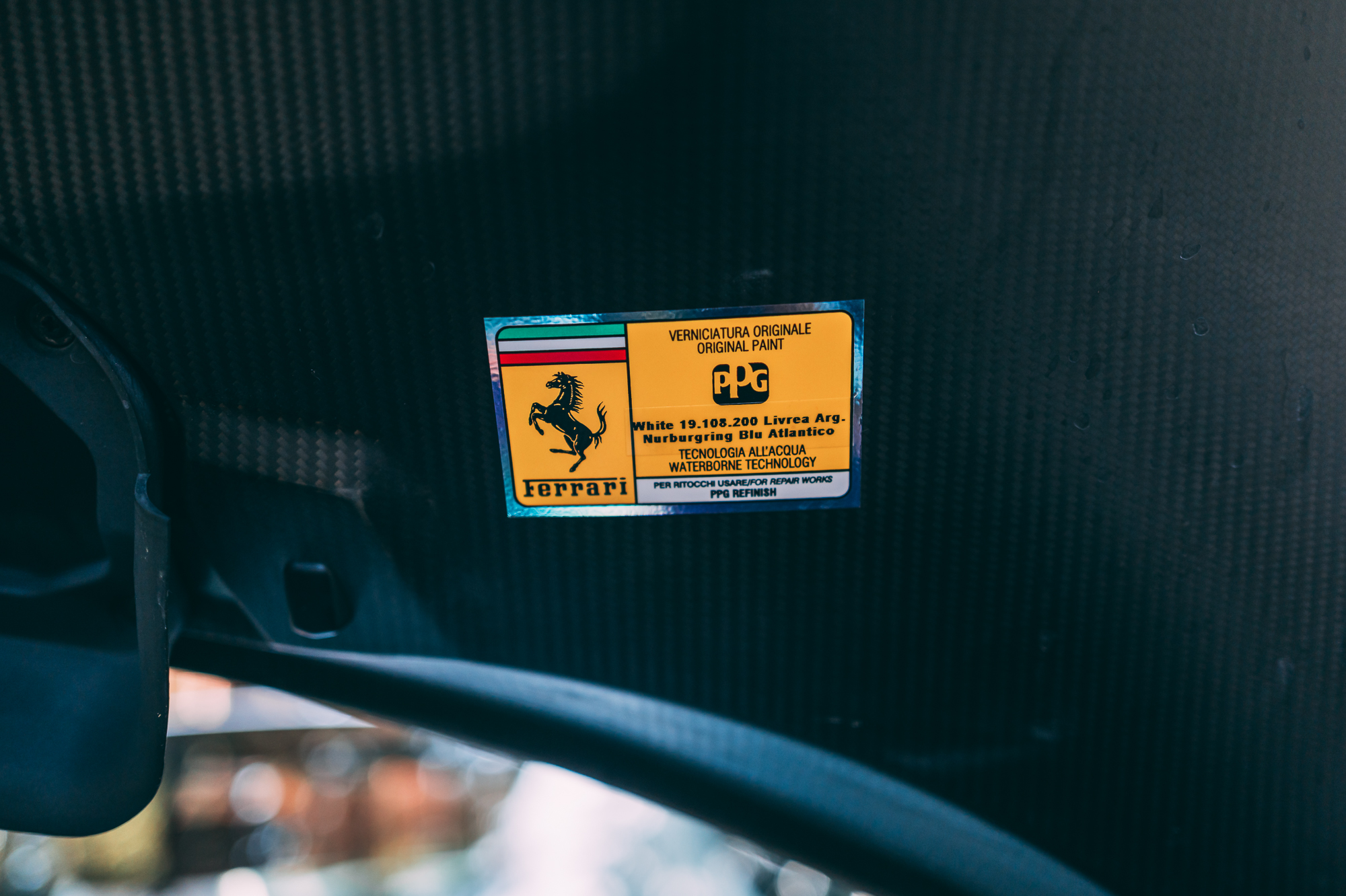The first owner specified in special order ‘Bianco Anastasia’ with a Blu Sterling interior and Extracampionario contrasting stitching. The car was delivered new in Germany to a first owner in Kronberg, near to Frankfurt.