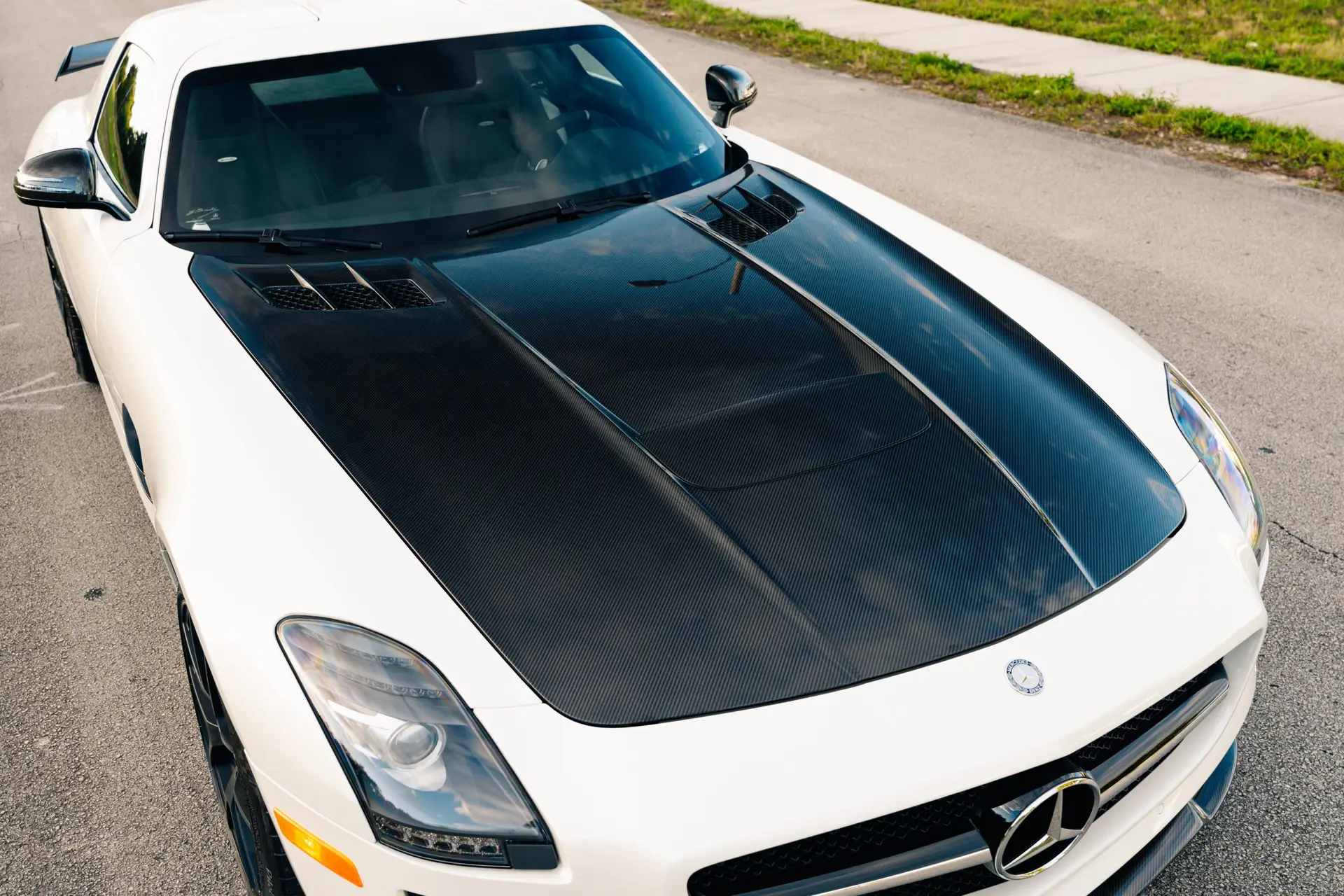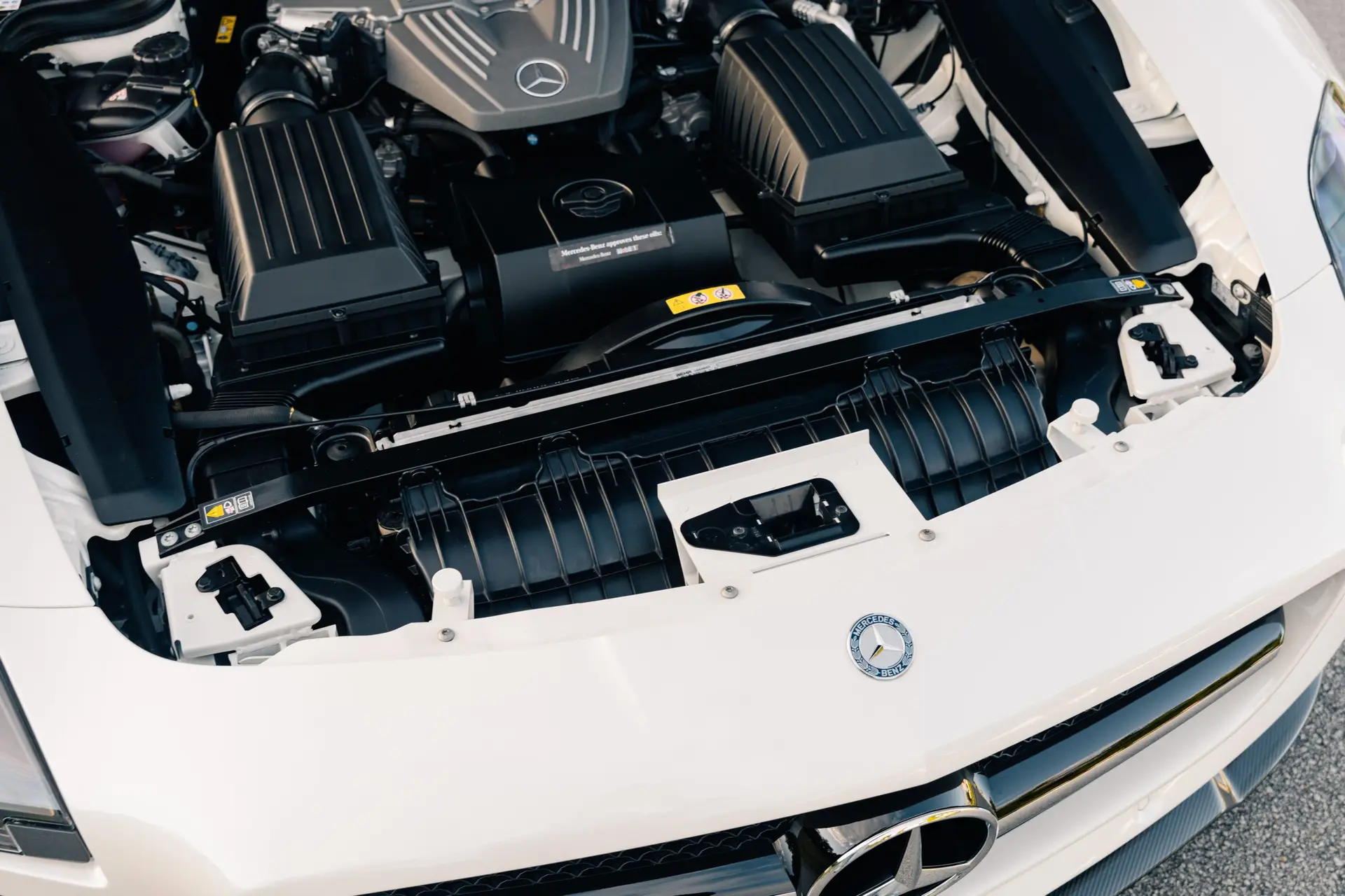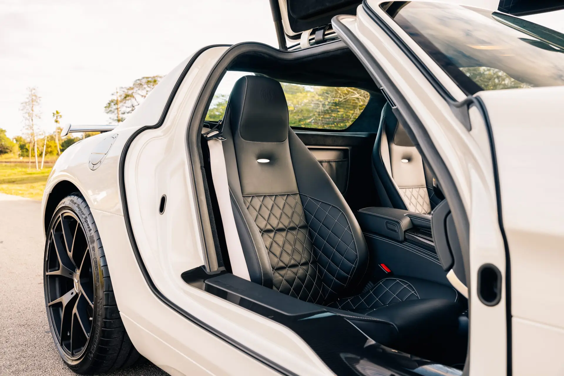 At first glance, the SLS AMG Final Edition is unmistakable. Its iconic gullwing doors, inspired by the legendary 1954 300SL, immediately set it apart from every other car on the road. When opened, they transform every arrival and departure into a moment, evoking both nostalgia and awe. The Final Edition elevates this dramatic design with unique aerodynamic enhancements, including a carbon fiber front splitter, fixed rear spoiler, and carbon fiber hood accents—elements derived directly from AMG’s motorsport experience.