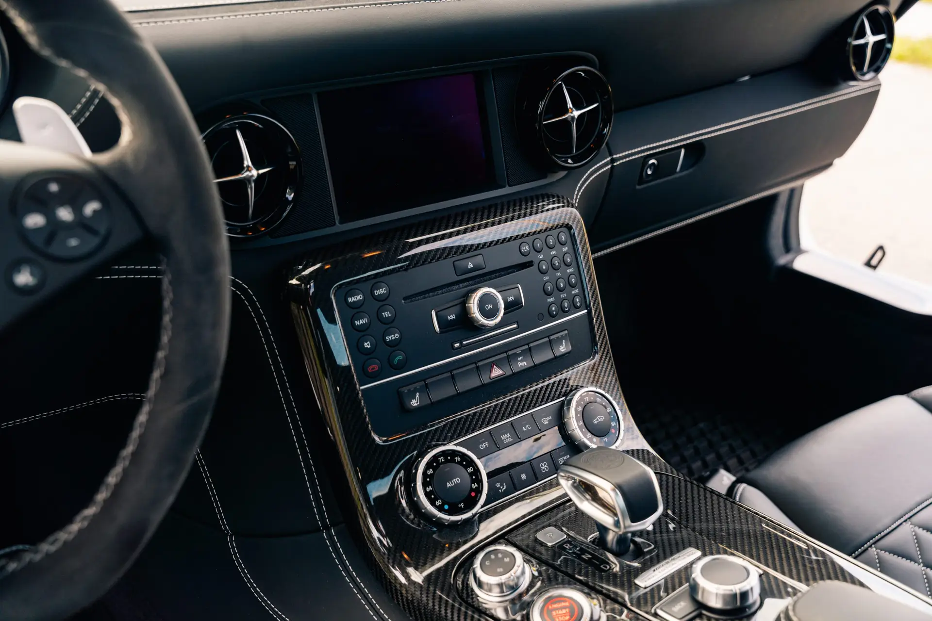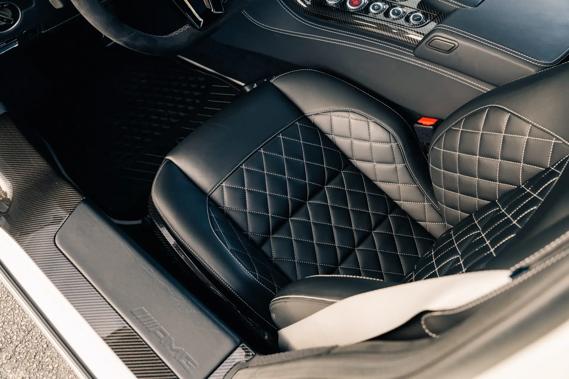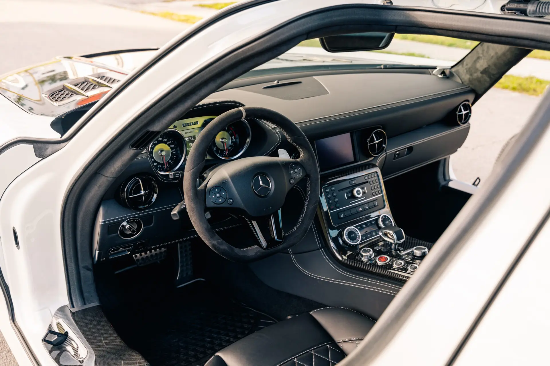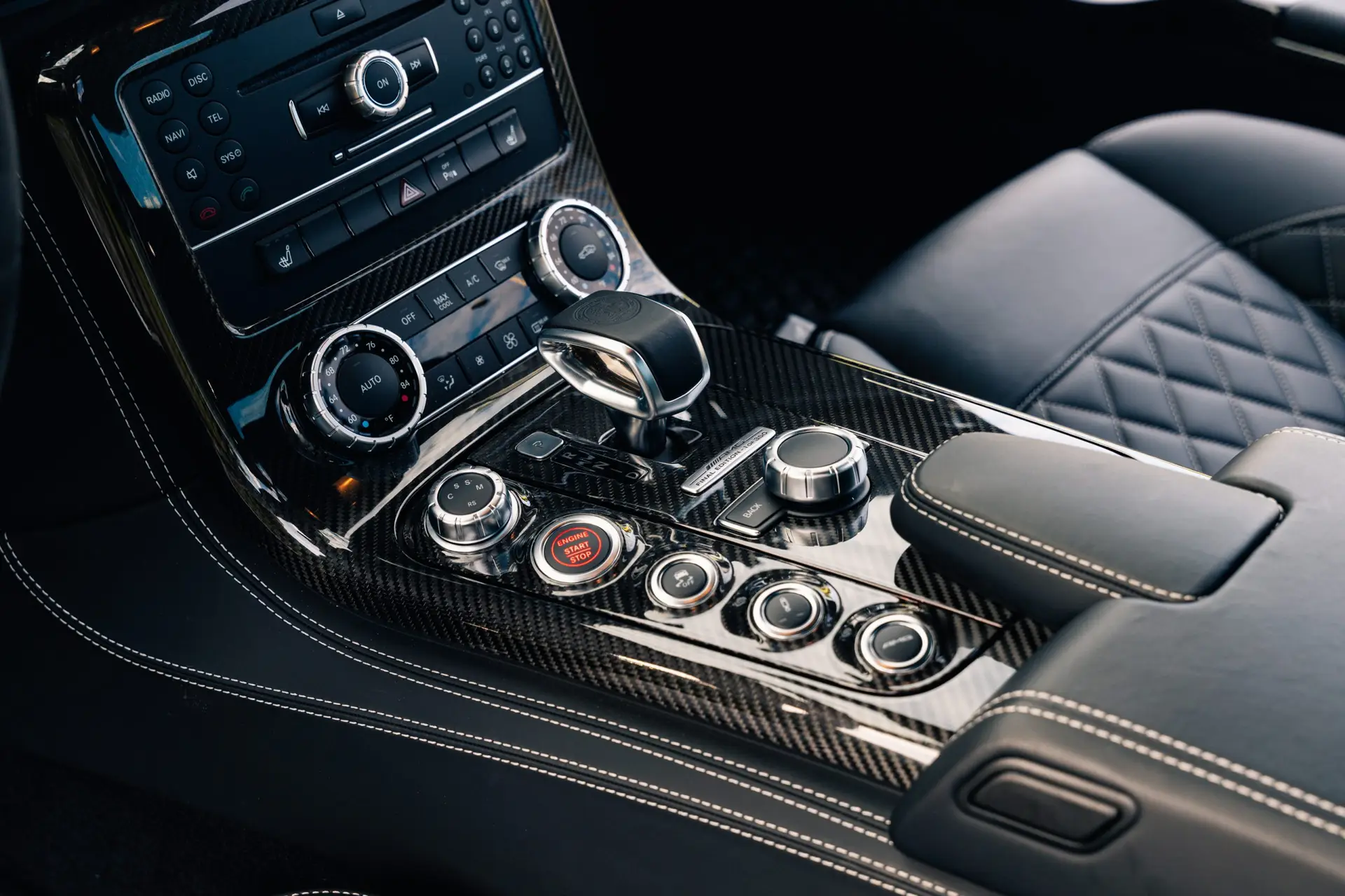 Inside the cabin and you are greeted by a driver-focused interior that blends luxury with motorsport influence. High-quality Nappa leather, Alcantara accents, and carbon fiber trim surround you, while the aviation-inspired dashboard layout reinforces the car’s performance pedigree. The Final Edition features exclusive interior details, including special badging and contrast stitching, reminding you that you are seated in one of the final and most coveted SLS models ever produced.