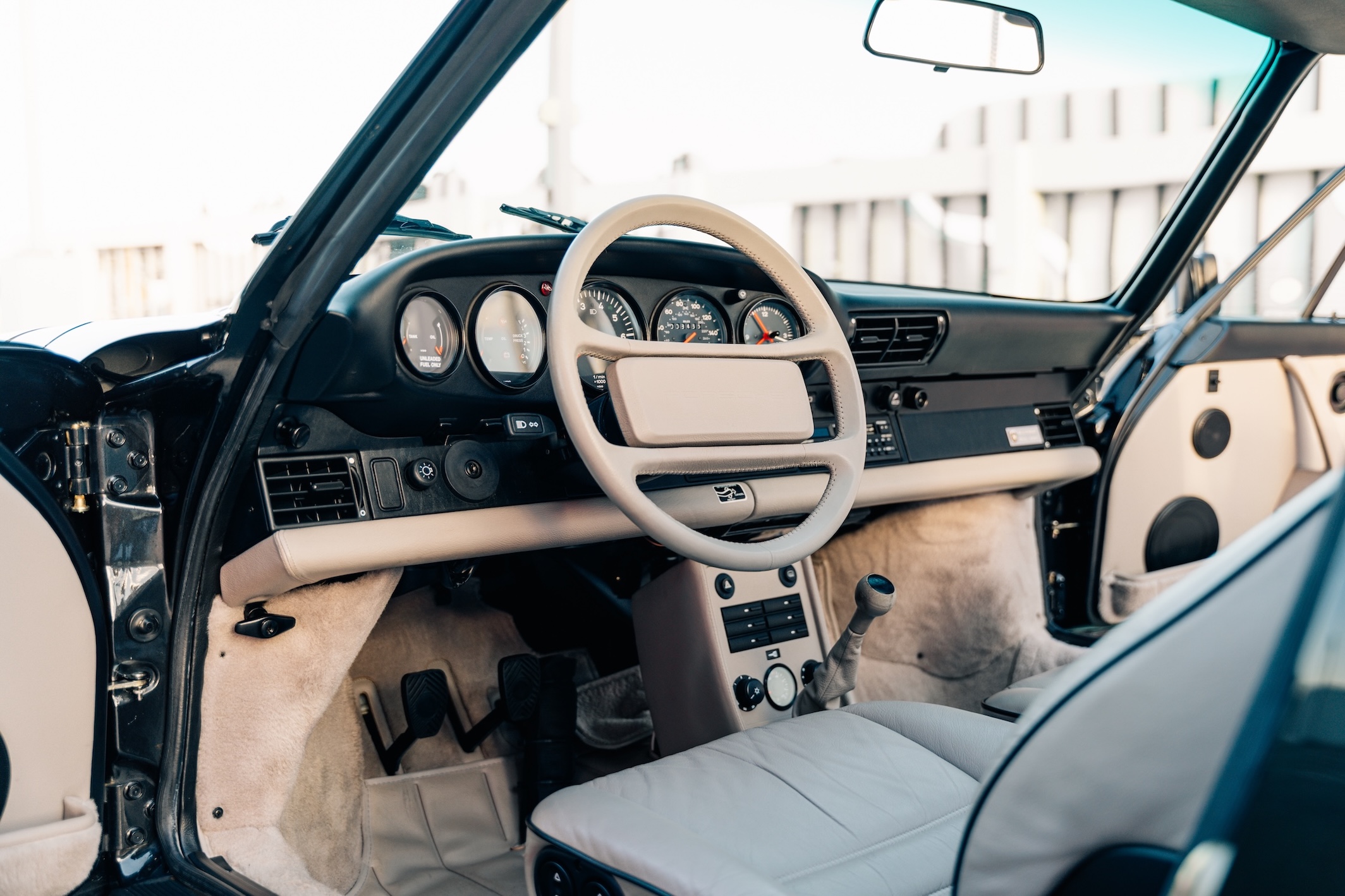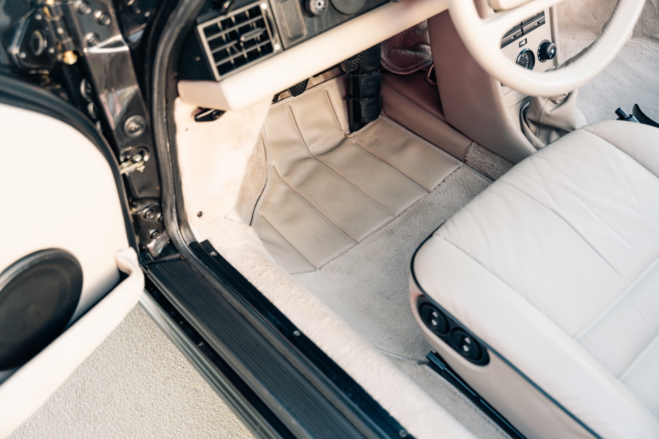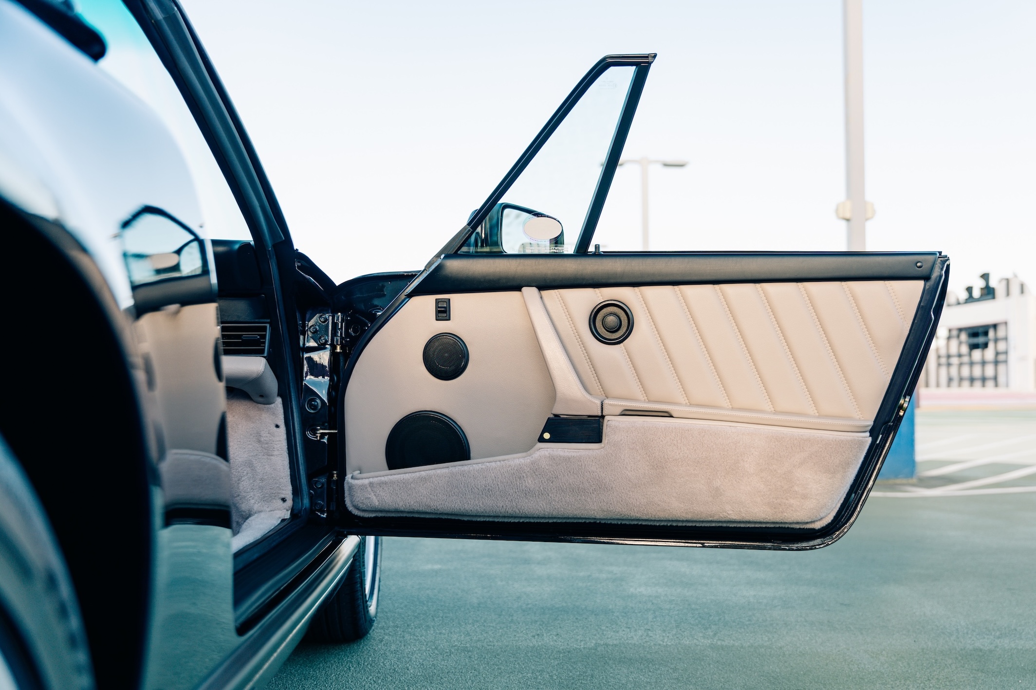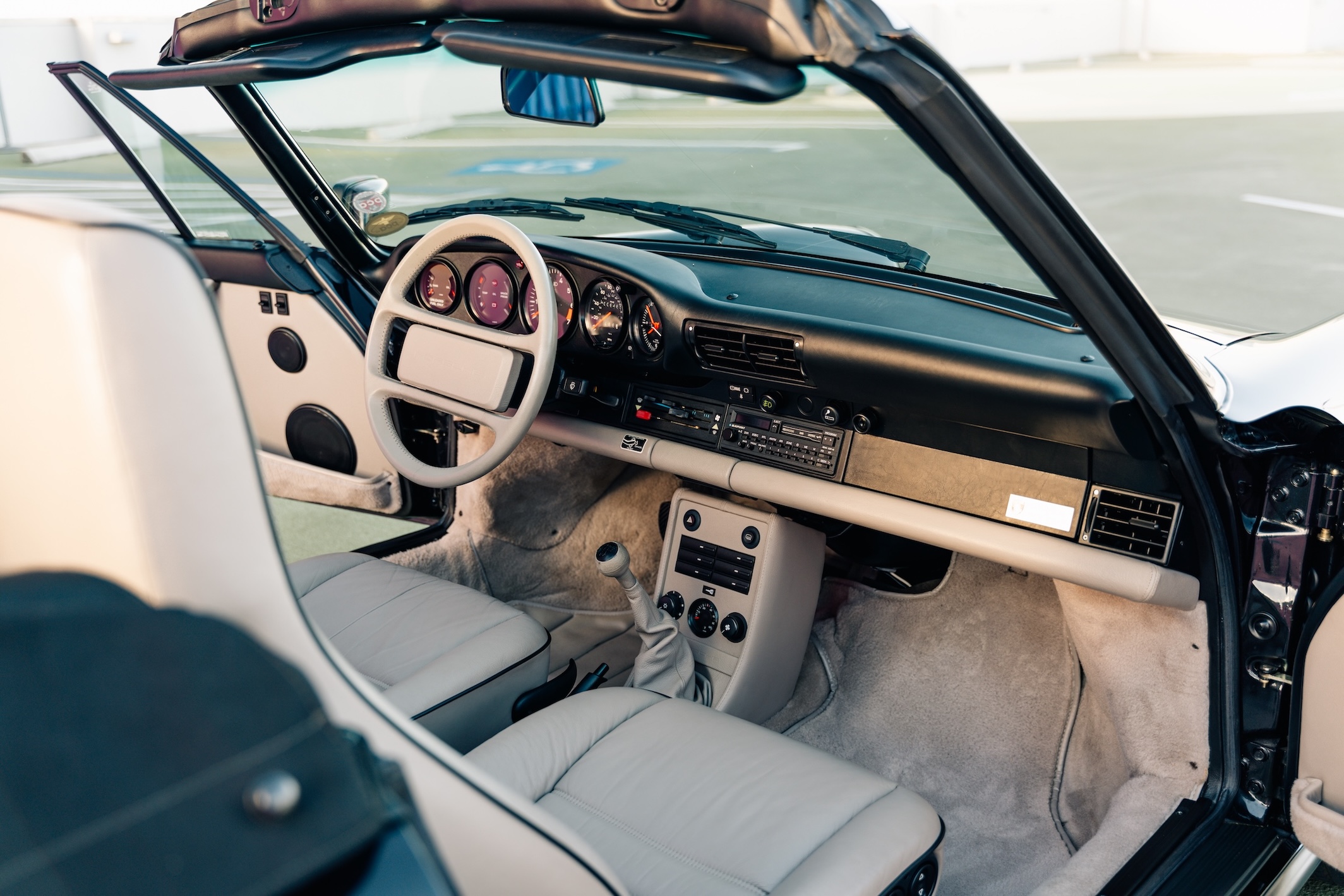 The interior showcases the quality and craftsmanship characteristic of late-1980s Porsche production. The Anniversary Edition featured commemorative badging and special interior detailing that distinguish it from standard Carreras. Leather surfaces remain supple, and the switchgear, instrumentation, and controls display minimal wear consistent with the car’s extremely low mileage. The cabin environment captures the analog purity of the era—clear gauges, simple ergonomics, and a driver-focused layout that connects you directly to the mechanical character of the car.