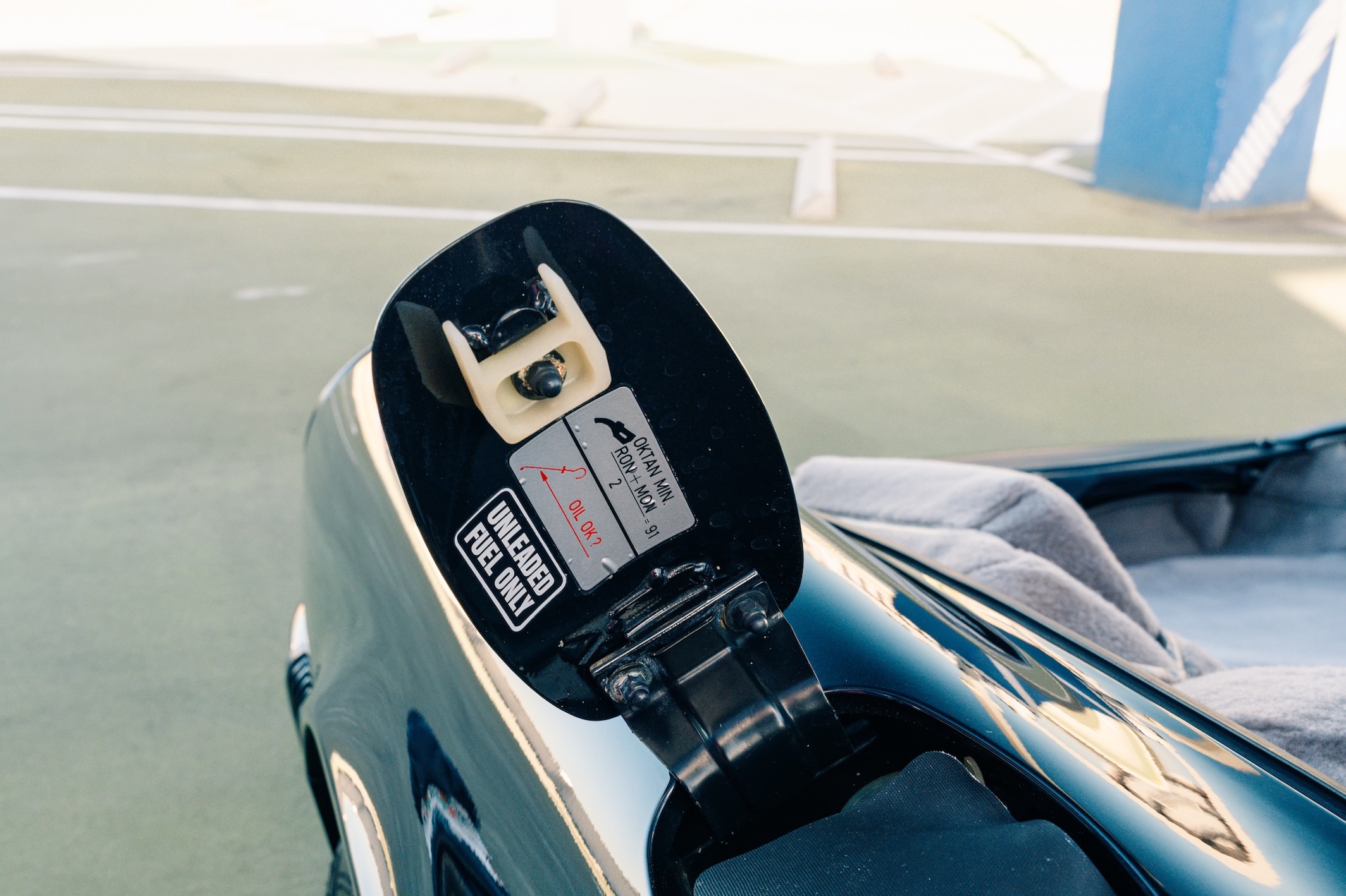 The Satin Black Metallic finish gives this car a distinctive and sophisticated presence. In direct light, the metallic undertones subtly emerge, adding depth and character to the paintwork while maintaining an understated, almost sinister elegance. The finish complements the Cabriolet’s flowing lines beautifully and reinforces the car’s exclusivity as one of only 40 Anniversary examples delivered in this color.