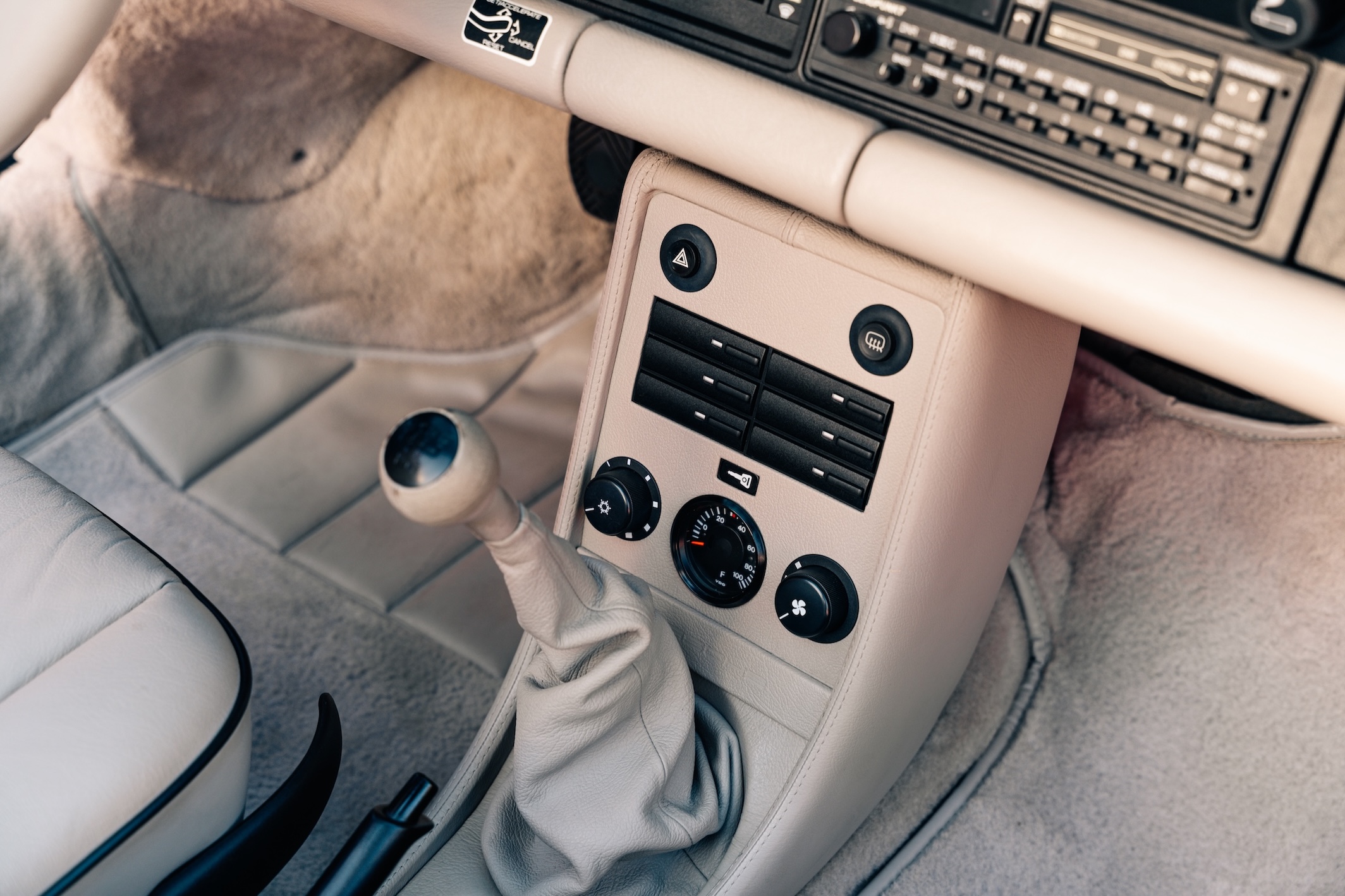 At its core is the celebrated 3.2-liter air-cooled flat-six engine, producing 217 horsepower in North American specification. Known for its durability and robust midrange torque, the Carrera 3.2 engine is widely regarded as one of the most reliable and usable air-cooled powerplants Porsche ever built. For 1989, all Carreras were fitted with the highly desirable G50 five-speed manual transmission. The G50 gearbox is praised for its refined shift action and improved clutch feel compared to earlier 915 transmissions, making the final-year G-Series cars especially sought after by driving enthusiasts.