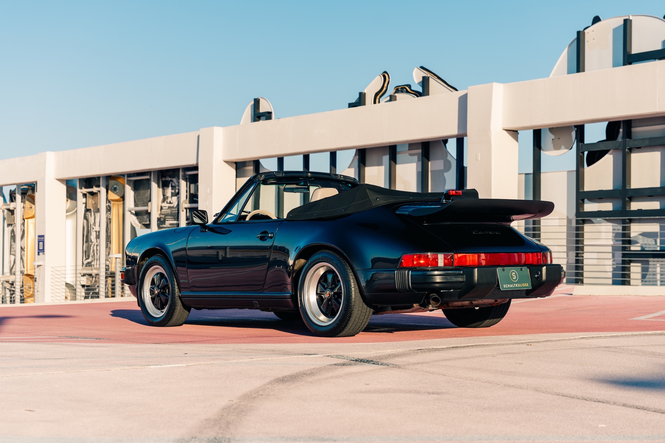 Rare color, ultra-low mileage, documented originality, and complete accessories combine to make this 1989 Porsche 911 Carrera Cabriolet 25th Anniversary Edition a compelling investment opportunity. For collectors seeking a highly original, investment-grade air-cooled 911 that celebrates a quarter century of Porsche heritage, this very rare Satin Black Metallic example stands as a beautifully preserved and increasingly rare offering.