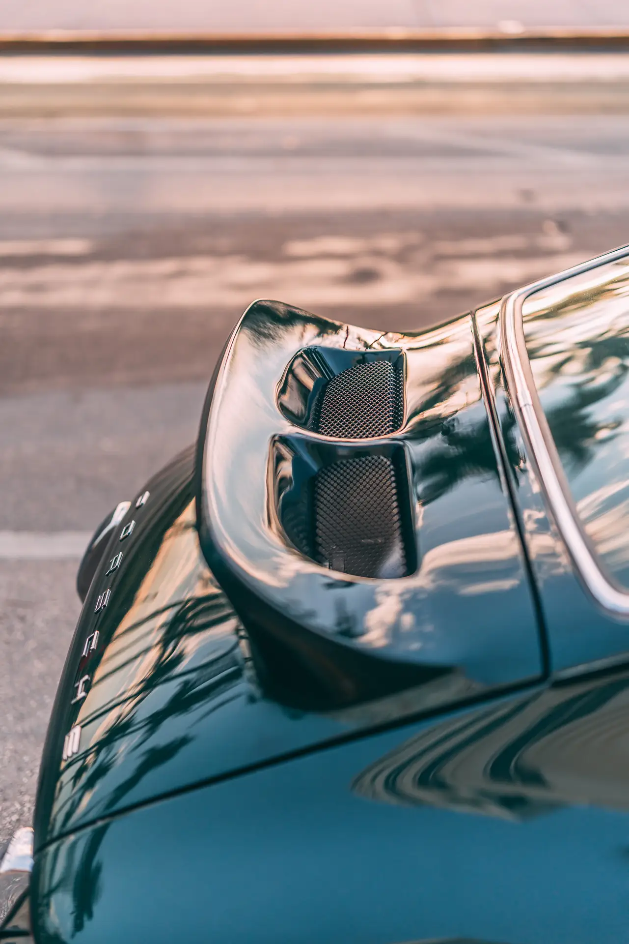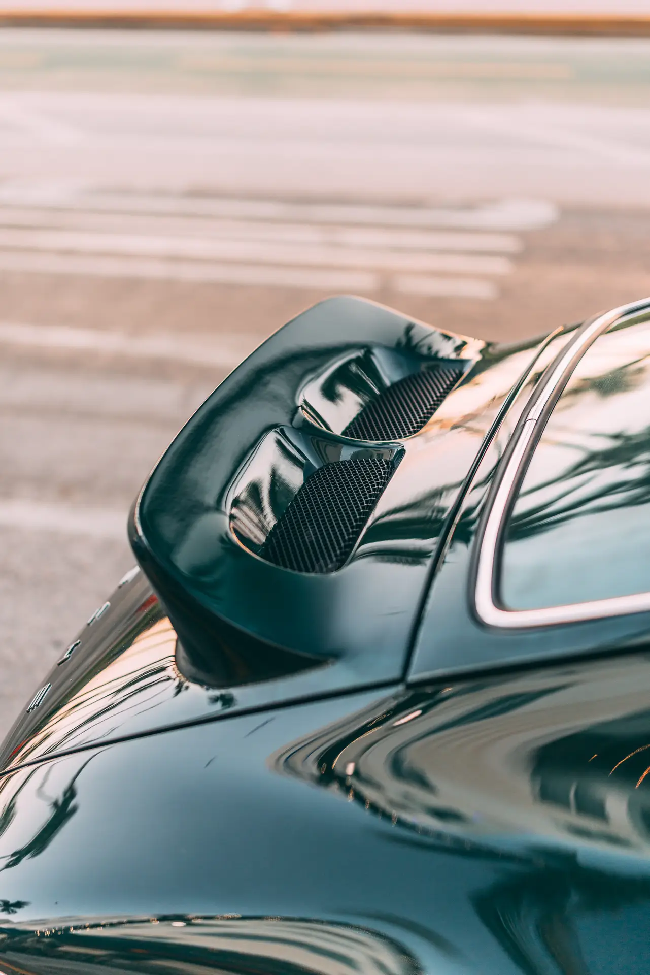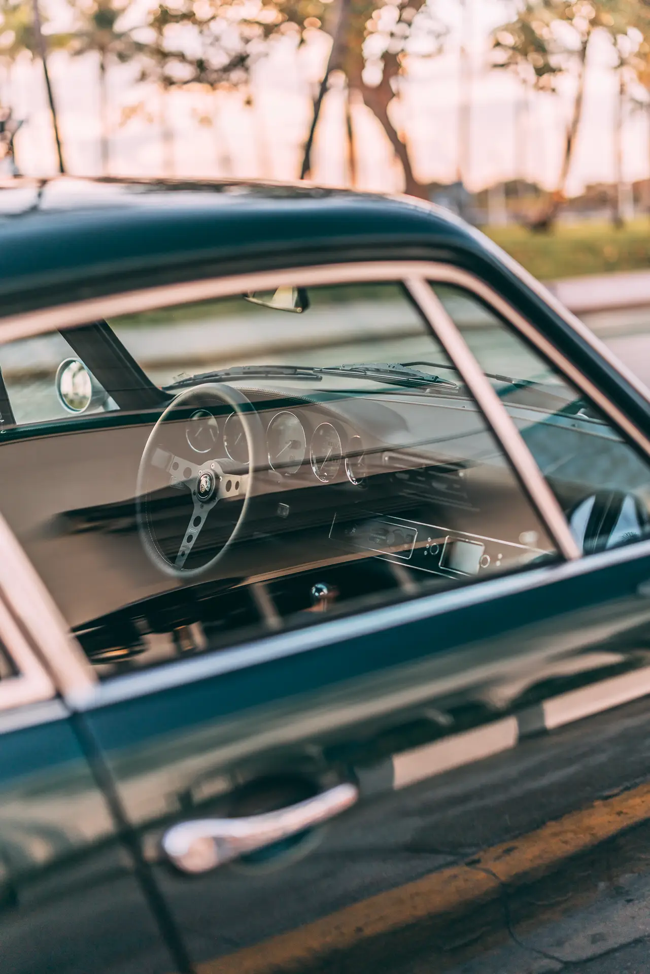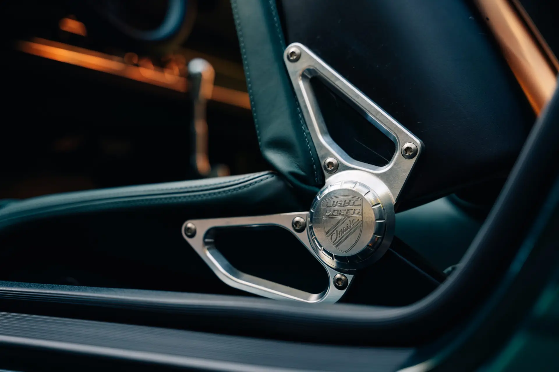 The exterior is finished in Porsche Racing Green Metallic, chosen to echo our company color and inspired by a client’s newly acquired 911 GT3. The interior continues this theme with green leather upholstery, complemented by a leather-wrapped roll cage and integrated speakers. Lightweight construction played an essential role: the rear lid, roof, and both front and rear fenders are made of carbon fiber, reducing weight without compromising strength. Inside, a precisely machined metal short shifter provides a direct and mechanical connection, making every gear change a tactile experience.