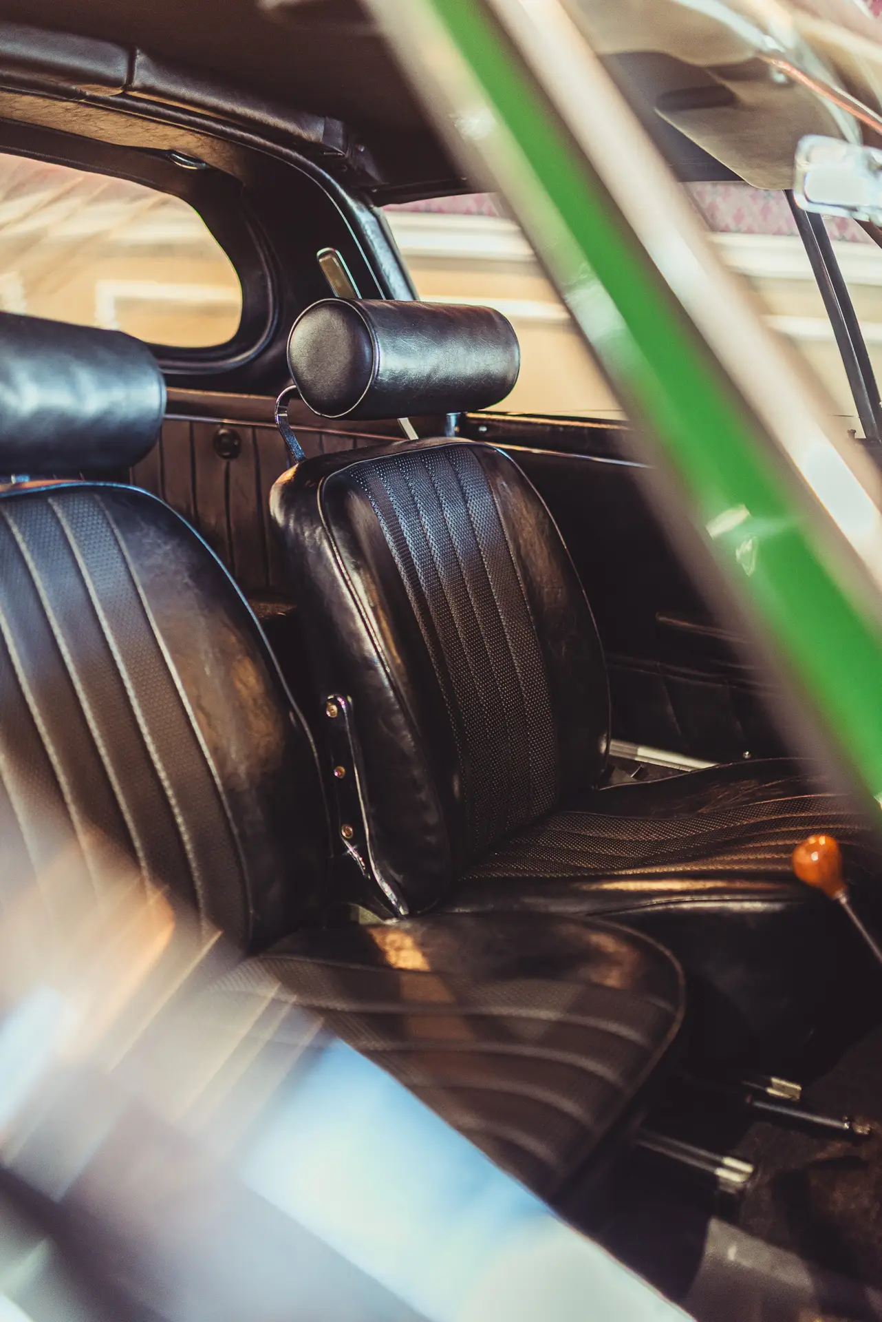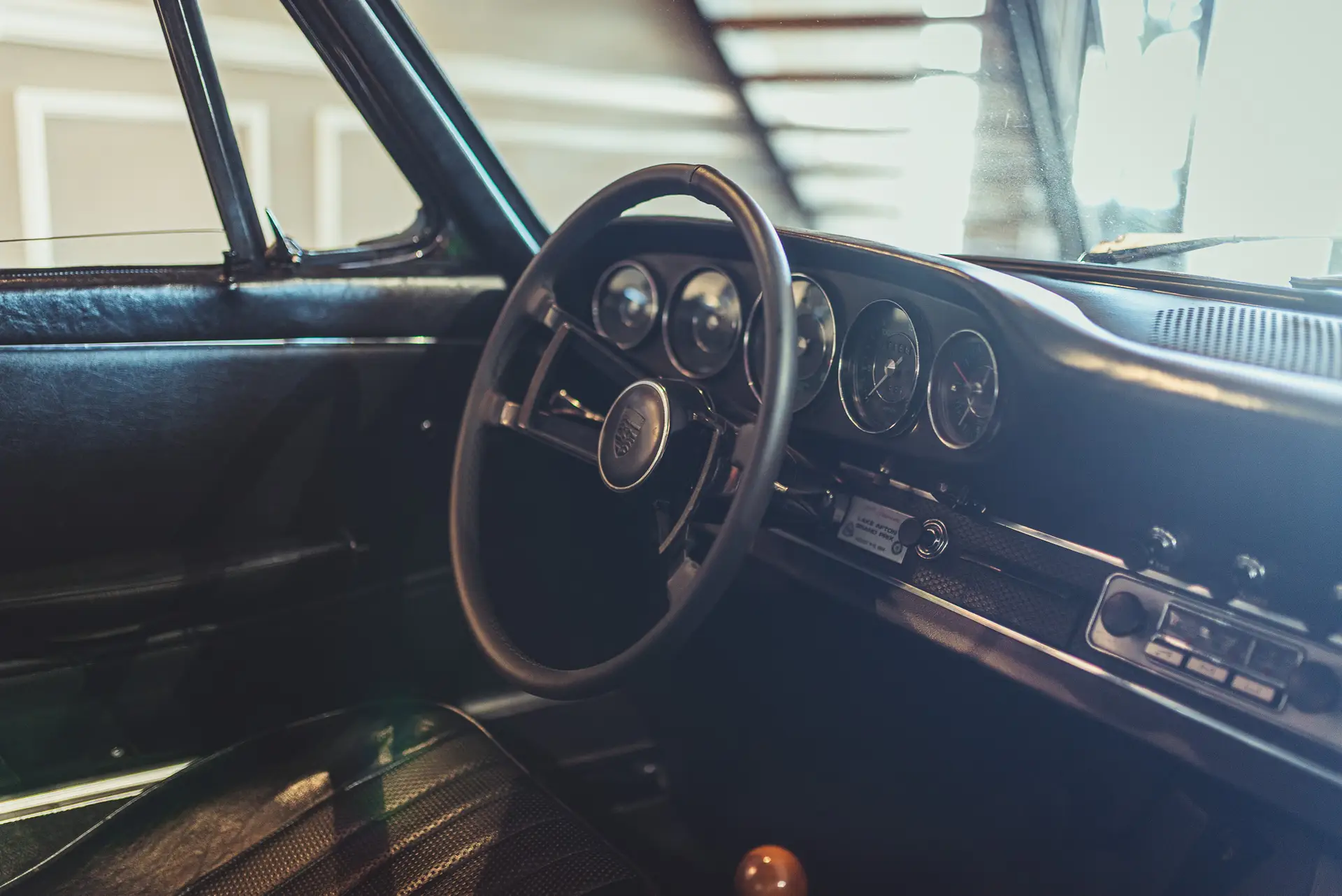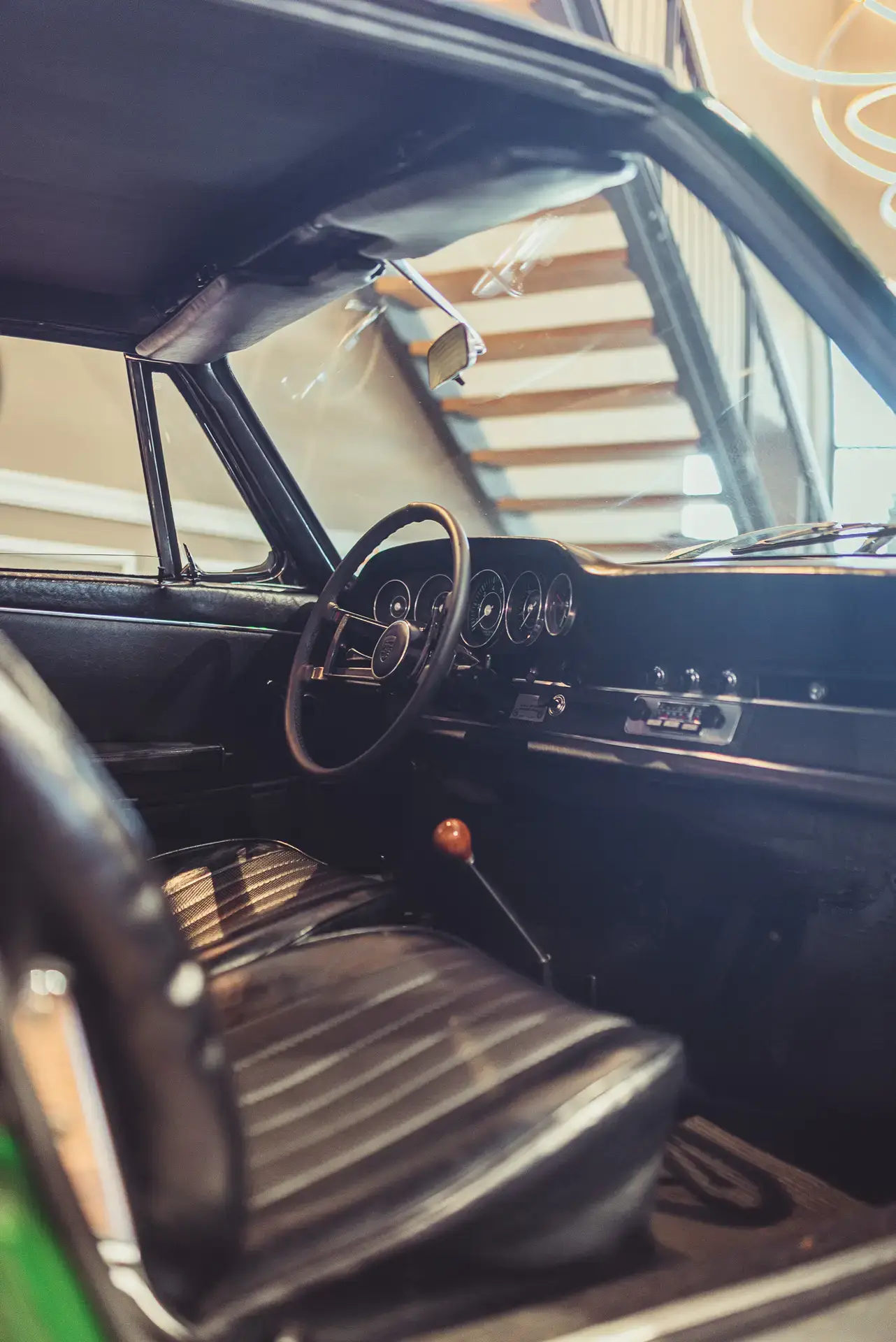 Our 911S Targa is a rare German delivery through dealer Raffay in Hamburg on the 26th of April 1967. The original color combination was Irish Green (irischgrün 6606 B) with a Black/Pepita interior (Kunstleder Schwarz/Pepita), as stated by the Porsche certificate accompanying the car.