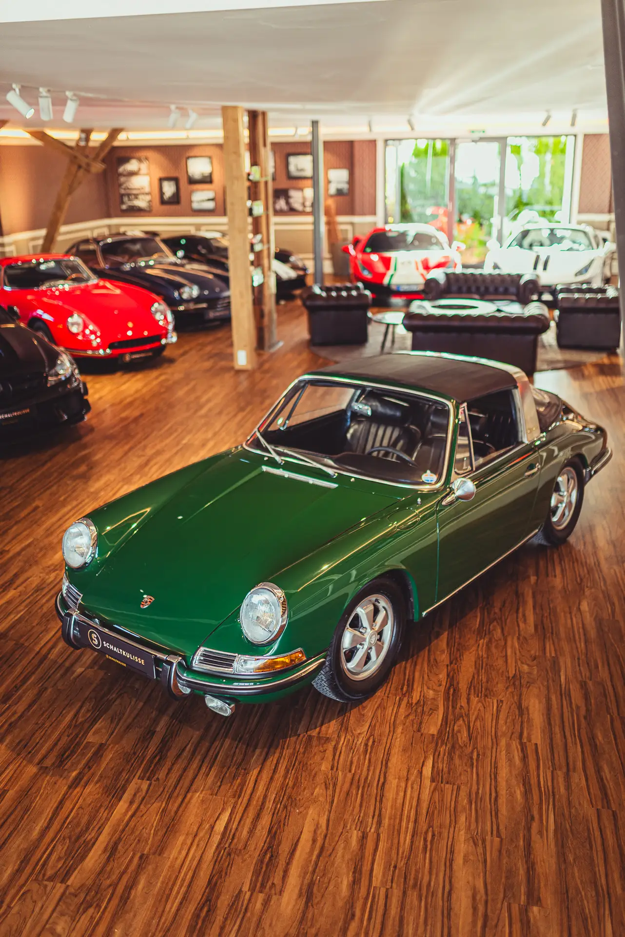 During its time in Germany, the 911S has been routinely serviced, the rust present from its previous time in the USA has been professionally repaired and thus the car now presents in rust-free condition, still finished in its patinated original color of Irish Green. Having never been restored, the Targa is in authentic, original condition.